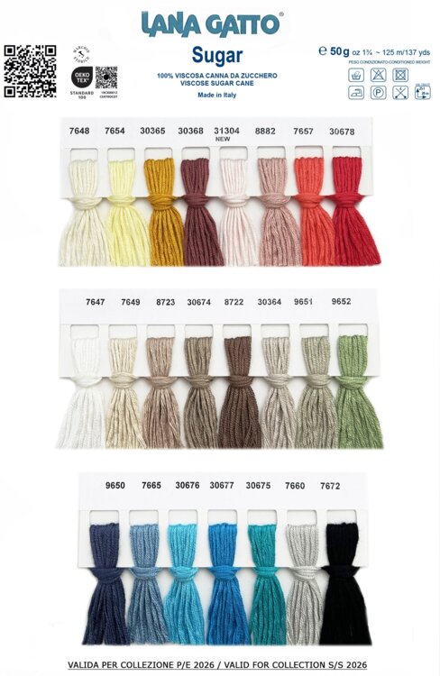 Elegantná a jemne lesklá priadza vyrobená zo 100 % viskózy zo sugar cane (cukrovej trstiny). Lana Gatto Sugar zaujme svojím hladkým povrchom, splývavosťou a jemným leskom, ktorý dodáva úpletom luxusný vzhľad.